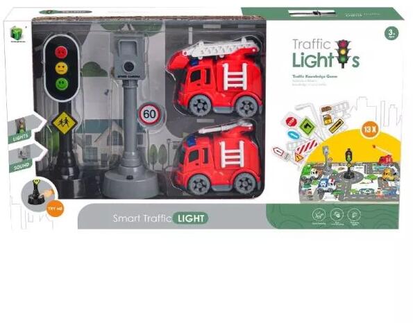 Közlekedési lámpa és trafipax tűzoltóautókkal játékszett Kiválóan alkalmas a gyermekek számára a közlekedési szabályok elsajátítására és a kreatív játékra. A szett tartalmazza a legfontosabb közlekedési eszközöket és jelzőberendezéseket, hogy a kicsik valósághűen élhessék át a közlekedési helyzeteket. Főbb jellemzők: Interaktív közlekedési lámpa: Valód