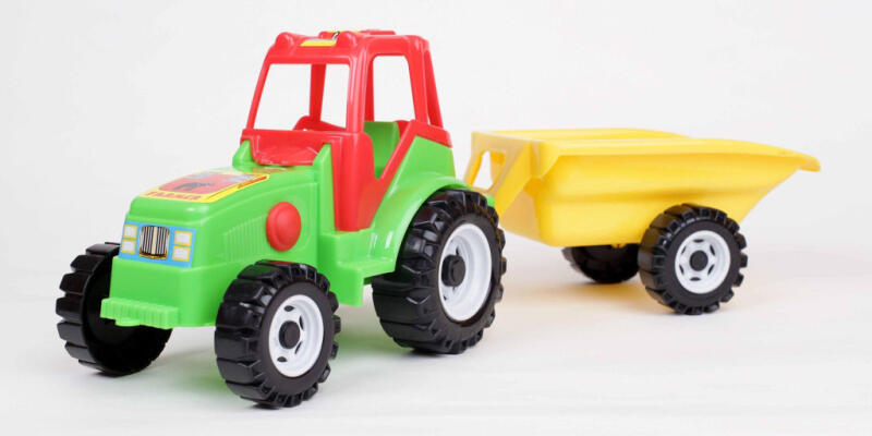 A Farmer traktor a szépen profilozott pótkocsival együtt kihagyhatatlan munkagép egy „fiatal gazda számára. A pótkocsi kormányozható és egy tengelyen van elhelyezve. A játék homok és más különféle elemek, például kavicsok szállítására is használhatóak. Farmer traktor pótkocsival (206) Tulajdonságok: - hossza: 57 cm - szélessége: 15,5cm - magassága: 18,5 cm - anyaga: