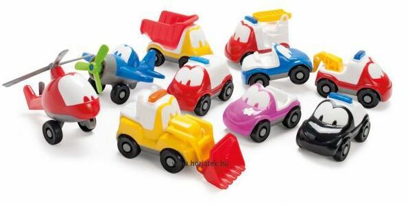 Ebben a 10 darabos készletben mindent megtalálsz, ami gurul, vagy repül!Repülő, helikopter, személyautó, terepjáró, dömper, munkagép, tűzoltó- és rendőrautó, de még autómentő is csak azt várja, hogy mókás autós kalandokba keveredjetek. A járgányok kerekei stabilak, strapabírók, ezért az udvaron, a homokozóban is használhatóak. Tartós, erős műanyagból készült,
