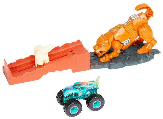 A bestiák is lehetnek hősök. A Monster Trucks Bestia pályaszettekben az ádáz teremtmények és hősi riválisok csatázhatnak a Monster Trucks világban. Az 1:64 méretarányú kisautóikat kilőve és precízen irányítva a srácok legyőzhetik ellenségeiket: a kardfogú tigrist, az óriás polipot és a többieket. Ez a készlet teljes szórakozást nyújt és olyan kihívást rejt, amib