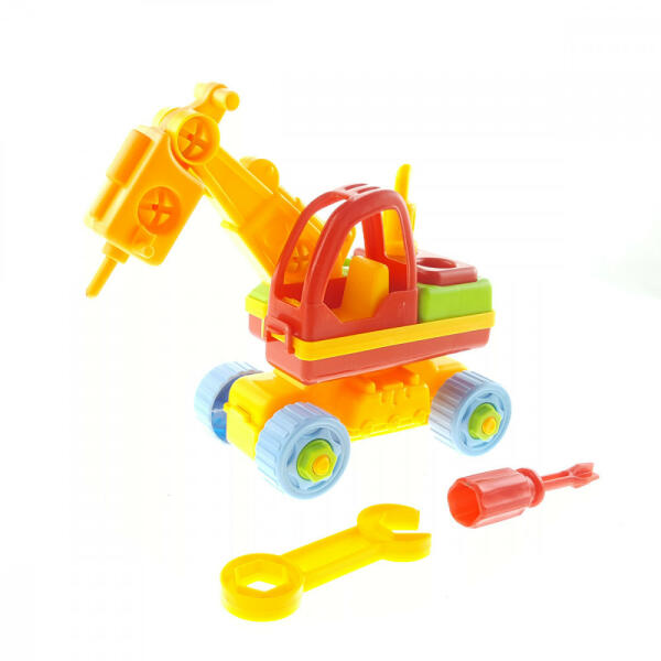 Ha szeretsz szerelni, akkor nem hiányozhat a készletből a szétszedhető munkagép család sem. Méret: 21x 8x 12cm. Remek fejlesztő játék, mellyel a szem - kéz koordinációt és a motorikus képességeket lehet edzeni. A csomag tartalma: - szerelhető munkagép - villáskulcs - csavarhúzó Anyaga: műanyag Méret: kb 17 cm