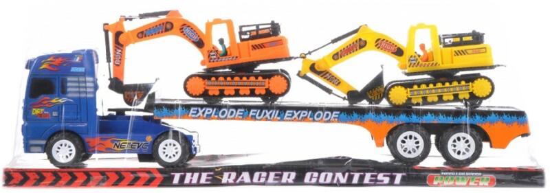 Munkagépeket szállító kamion készlettel gyermeke most rögtön 3 jármű tulajdonosa lehet. A hatalmas kamionon két markoló kapott helyet. A mozgatható elemek valósághű élményt nyújtanak az építkezésen dolgozó kicsiknek. A játék kül- és beltéren egyaránt használható. A járművekkel a szerepjáték fejleszti a képzelőerőt. Vontatóautó mérete: kb. 53 cm rámpával É
