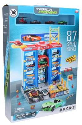 Műanyag garázs liftes felvonóval, amely órákig szórakoztat! Nincs hol parkolni? Szerezze be ezt a garázst, és többé nem lesz gondja a parkolással. A csomag tartalmaz egy összecsukható garázst és 2 műanyag autót. Szabad kerekek. Autó mérete 7 cm. Kézi emelő, üzemanyagpumpa. A garázs méretei összehajtva 34,5x33,5x28,5 cm. Ajánlott életkor: 3 éves kortól