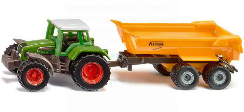 A Siku 1605 Fendt 926 Vario traktor Krampe billenős utánfutóval egy 1:87 méretarányú játékautó / modell autó. A Siku 1605 Fendt 926 Vario traktor Krampe billenős utánfutóval mérete: 160x38x42 mm, méretaránya: 1:87. Minőségi autómodell kínálatával 1921 óta hódít a gyermekek és felnőttek körében a német Siku, köszönhetően a minőségi kivitelnek és a részletes kido