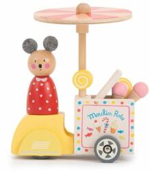 Pisztácia van? Ki kér egy gombóc fagyit?Kezdődhet a szerepjáték az édes egérkével, és fából készült fagylaltos triciklijével!A kis kocsihoz hasznos napernyő és négy "jéghideg" finomság is tartozik. A játék 3 éves kortól ajánlott.