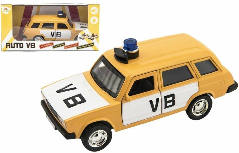 A VB Lada kombi rendőrautó gyönyörű modellje, amely nem hiányozhat egyetlen kis rendőr garázsából sem. A modell nyitott bejárati ajtóval rendelkezik. A körülbelül 12 cm-es autó könnyű hanggal és visszahúzással rendelkezik. 3x AG3 elem a termék része. 3 évesnél idősebb gyermekek számára alkalmas.