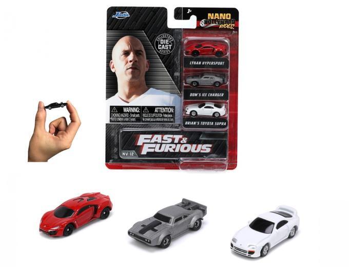 A Fast and Furious nano fém autószett - 3 db-os a híres Halálos Iramban akciófilmsorozat világába kalauzol el. Csatlakozz a The Last Saga epizód gyorsabbnál gyorsabb versenyautóinak akciódús világába ! A szettben találsz egy Lykan Hypersport, egy Ice Charger és egy Toyota Supra járgányt is. A 4 cm-es fém kisautókkal eljátszhatod kedvenc jeleneteidet, vagy sorba rendezheted ők