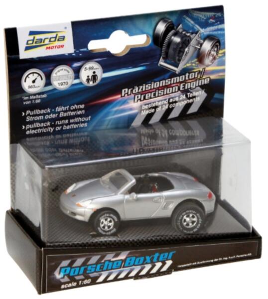 Darda: Porsche Boxster pályaautó hátrahúzható motorral 1/60 Hivatalos magyarországi forgalmazótól. Leírás: A Porsche Boxter az egyik legkedveltebb szabadidő sportkocsi azok közül, melyek valaha elhagyták a híres gyár gyártócsarnokait. Ez a részletgazdagon kidolgozott hátrahúzható motorral szerelt kisautó remek választás a Darda pályákra. A 24 alkatrészből álló motor