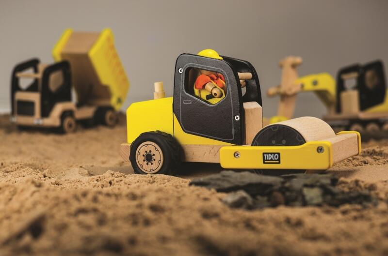 Az épületek épülnek, de mi a helyzet az utakkal? Ez a tömör fából készült henger készen áll a talaj kiegyenlítésére és utak kialakítására. Ez a valósághű gép forgó hengerrel és vaskos és gumiszerű kerekekkel rendelkezik, így ideális sima felületekhez. Lekerekített formájú, és összességében úgy tervezték, hogy a kisgyermekek könnyen megfogják. Felül nyitott