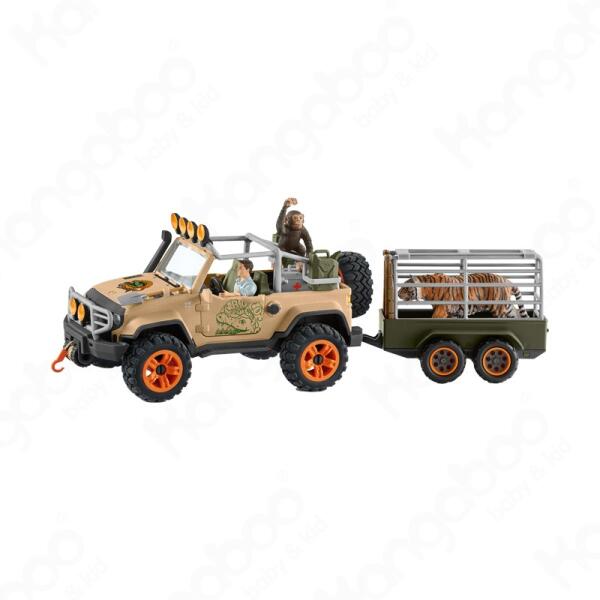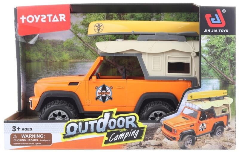 Terepjáró autó lendkeréken, csónakkal az autó tetején. Fény- és hangeffektek.