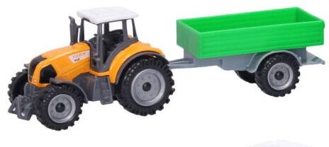 Traktor, rönkszállító pótkocsival 3 éves kor feletti gyermekek számára A munkagépek kedvelt darabja a rönkszállító traktor. A szállítmány lerakodható, cserélhető. Anyaga: műanyag Méret: 28 cm