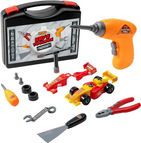 A készlet egy sportautóból és egy szerszámból áll. A csavarhúzó lehetővé teszi a gyermek számára, hogy lecsavarja a jármű egyes elemeit. Az össze- és szétszerelés lehetősége sok órányi remek szórakozást biztosít a gyerekeknek. Az Aga4Kids gyerekkészlet 27 alkatrészt tartalmaz két sportautó összeállításához. A funkcionális elektromos csavarhúzónak köszönhető