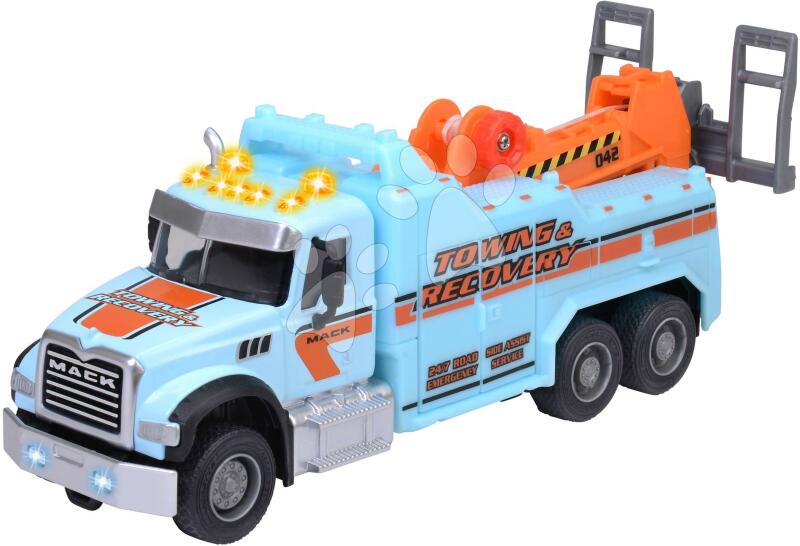 Vontatókocsi Mack Granite Tow Truck a francia Majorette márka műhelyéből örömet szerez minden gyerkőcnek, főleg a kisfiúknak már 3 éves kortól. A hivatalosan licenszelt Mack márkanevet viselő kékes-narancssárga vontatókocsi valósághű élményt nyújt a gyerekeknek és felnőtteknek egyaránt. A fémkarosszériás autó gumikerekekkel, mozgó részekkel és precízen kidolgozot