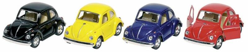 Die-cast fém lendkerekes játék autó VW bogár négy színben, nyitható ajtókkal 1:37 méretarányban. Anyaga: fém Méret: 10 cm