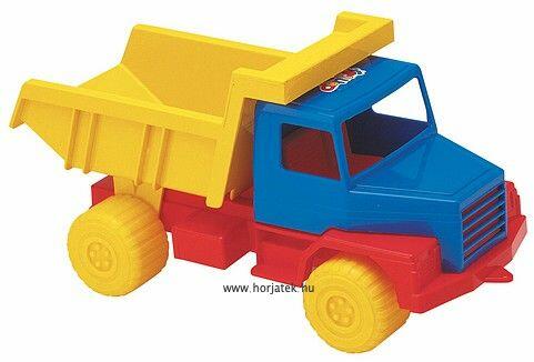 Ennek a teherautónak stabil, strapabíró kerekei vannak, ezért a homokozóban is bátran használható. Homokvárat építésénél jó segítség lesz. Mint egy igazi dömpernél, a hátulja ennek is billenthető, így a terhet könnyen ki lehet belőle önteni. Tartós, erős műanyagból készült, óvodák számára fejlesztették ki, teherbírását tesztelték, így az otthoni használatb