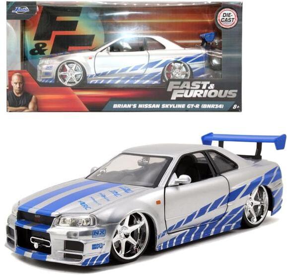 A Fast & Furious 2002 Nissan Skyline játékautó 1:24 méretarányban készült, és a Halálos iramban filmek rajongóinak ideális választás. A részletes kivitel és a karakterhű színek tökéletesen visszaadják a film autójának megjelenését. Ez a modell 19 cm hosszú, tartós műanyagból készült, így nemcsak gyerekeknek, hanem gyűjtőknek is remek választás. A Nissan Skyli