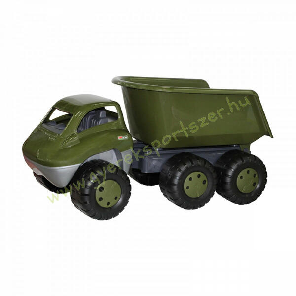 Polesie márkájú Dakar óriás katonai dömper. Nehéz rakományokat szeretnél szállítani a katonaságnak? Esetleg a katonák felszerelését kell szállítani? Akkor ez az óriás katonai dömper csak Rád vár! Dömpereddel homokot, kavicsokat, kedvenc játékaidat is szállíthatod vagy akár Te magad is ráülhetsz a platójába. Vezetőfülkéje nagy sávban forgatható, ezáltal könnye