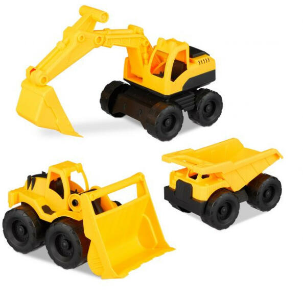 3 részes játékkészlet - Teherautó, homlokrakodó és kotró 3 éves kortól Remek szórakozás kis építőmunkások számára. Munkagépek kint és bent. Iideális a homokozóban, a tengerparton vagy a gyermekszobában egyaránt. Játék Munkagépek méretei Teherautó maximális méretei: 15,5 x 16,5 x 24 cm Homlokrakodó maximális méretei: 24 x 14 x 25 cm Kotró autó maximális méretei