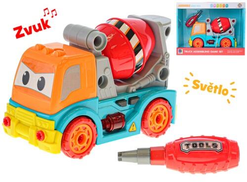 MIKRO TRADING - Csavarhúzó autó keverő 25cm elemmel működő szabadon futó fény és hang dobozban