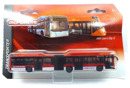 A Majorette Man City játék busz - piros a gyors városi tömegközlekedés eszköze a játékvárosokban. A piros-fehér színű csuklós busz a valóságnak megfelelően került kidolgozásra. A Majorette játék busz szabadon futó kerekeken gurul. Válts jegyet a járatra és járd be vele a várost!