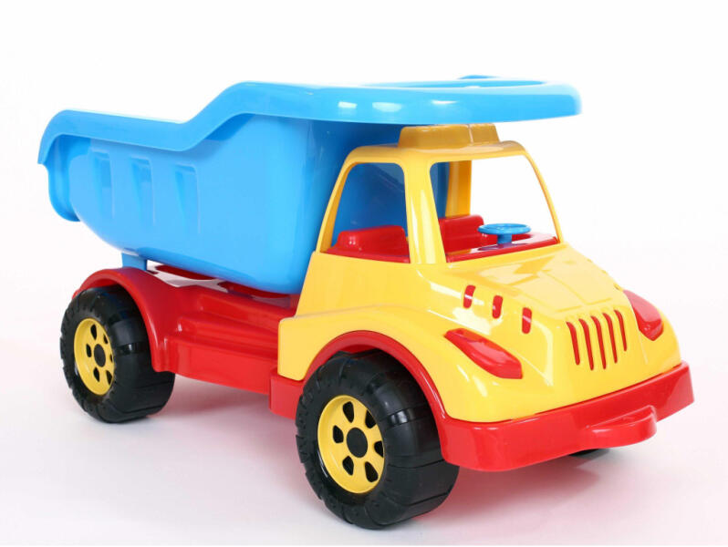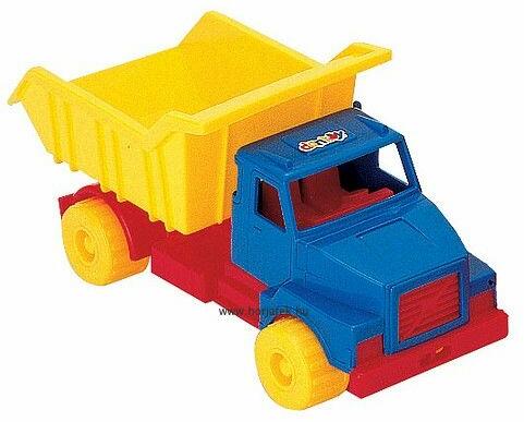Ennek a teherautónak stabil, strapabíró kerekei vannak, ezért a homokozóban is bátran használható. Homokvárat építésénél jó segítség lesz. Mint egy igazi dömpernél, a hátulja ennek is billenthető, így a terhet könnyen ki lehet belőle önteni. Tartós, erős műanyagból készült, óvodák számára fejlesztették ki, teherbírását tesztelték, így az otthoni használatb