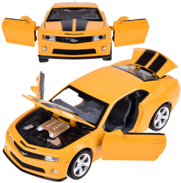 A Chevrolet Camaro SS 1:32 játékautó sportgrafikával ideális ajánlat a gyors vezetés kedvelőinek. A Transformers filmek nézése közben beleszerettél a sárga darázsba? Ezt a Chevrolet Camarót, az Autobot-filmek egyedülálló sztárját is imádni fogja. Az autó nagyon gondosan és esztétikusan készült, a legapróbb részletekre is fektetve a hangsúlyt, ami biztosan minden kis ra