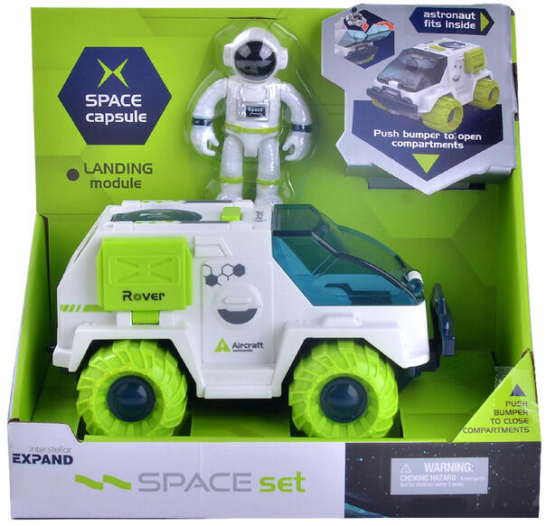 Járd be a Hold. vagy akár a Mars felszínét is ezzel a lendkerekes űrautóval. Az autó bármilyen bolygó felületén megállja a helyét, hogy a bátor űrhajósok felfedezhessenek, és mintát vehessenek az addig ismeretlen létformákból. Az űrautó kabinja nyitható, így az autóhoz tartozó űrhajóst be is tudod ültetni.