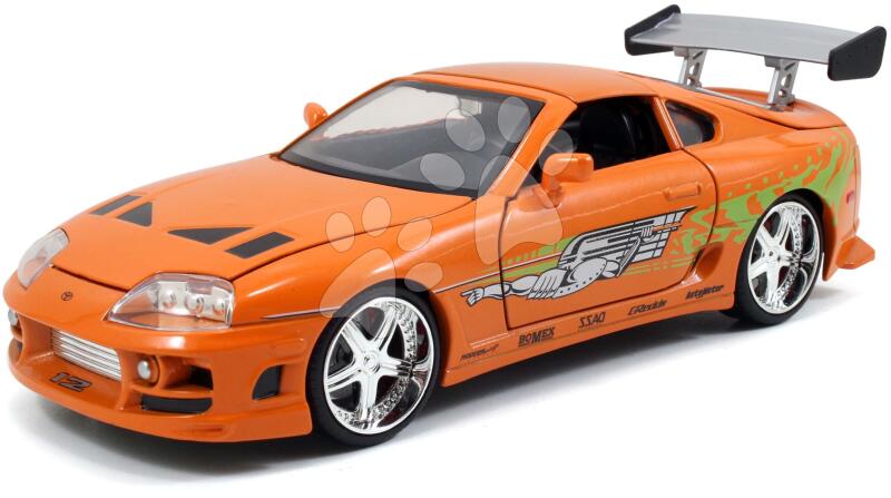 Kisautó Toyota Supra 1995 egy igazán nagyszerű ajándék lelkes gyűjtőknek és gyerekeknek 8 éves kortól ajánlott. A 21 cm-es fém játékautó valósághű modellje minden kisfiút elbűvöl, aki Halálos iramban filmrajongó is egyben. Játékautó narancssárga változatban nyitható ajtókkal, motorháztetővel és kofferrel van kialakítva. A kisautó precízen kidolgozott részletei