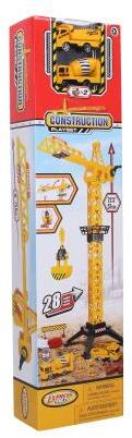 Daruk 2 építőautóval. Kézi daru, 360 fokban forgatható kar. Tartalmazza daru, 2 építőautó, 2 építőfigura, 2 hordó, 2 sorompó, építőanyag . Képes összeszerelési útmutató a csomag hátoldalán. A daru mérete 57 cm. Kor: 3+