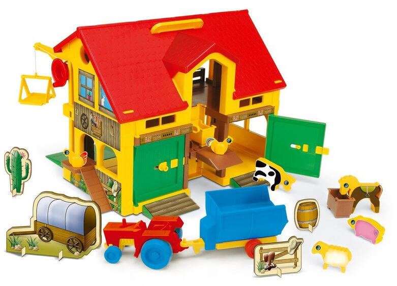 Wader 2 szintes farm ház állatokkal Kétszintes gazdaság háziállatokkal ( ló, tehén, birka, sertés, kakas és 2 tyúk ) és pótkocsis traktorral felszerelt . A készlet fejleszti a legkisebbek fantáziáját, és egyszerre több ember játékát teszi lehetővé, akik így megtanulnak együttműködni és megosztani a játékokat. A játéknak sok mozgatható eleme van, többek között: