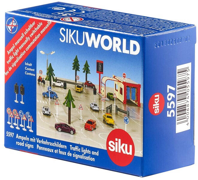 Tedd tele játékautóid utcáját közlekedési táblákkal! A Siku: World jelzőtábla - 5597 készletben két közlekedési lámpát és táblákat is találsz, amikkel a KRESZ alapvető szabályait is meg tudod tanulni. Helyezd el SIKU autóid között, és tartasd be a közlekedést! A Siku: World jelzőtábla készlet a kisebb SIKU járművekkel és munkagépekkel is együtt használható. C