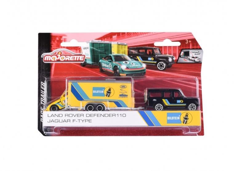 A Majorette Race Trailer 3 részes járműkészletei kötelező darabok a versenyzés rajongóinak. A játékszett tartalmaz egy kihajtható motorsport utánfutót, amelyen helyet biztosít az egyik versenyjármű szállítására, valamint egy második járművet az utánfutó vontatására. Csakúgy, mint egy igazi versenycsapat, mind a 3 jármű ugyanazt a motorsport dizájnt viseli, egy jól i
