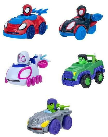 Póki egyik kalandból a másikba száguldozik a városban. Most te is újrajátszhatod az animációs sorozat jeleneteit ezzel a 13 cm-es, koronglövő szuperhős járgánnyal. Csak töltsd meg a koronggal az autód, nyomd le a figura fejét, és célozz! A járművek 2-2 korongot tartalmaznak, amelyek a motorháztetőben tárolhatóak. A sorozatban megtalálható Pókember mellet Ghost Spider, H
