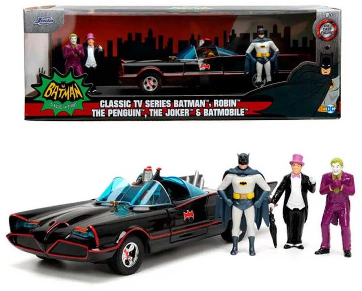 Batman: 1966 Classic Batmobil fém prémium autómodell 4db akciófigurával 1/24-es méretarány Hivatalos magyarországi forgalmazótól. Leírás: Fedezd fel a nosztalgia varázsát a Batman 1966 Classic Batmobil fém prémium autómodelljével! Ez a lenyűgöző modell az eredeti Batmobil kultikus megjelenését hozza el, és az 1/24-es méretarány a valóság részleteit csodálatosan tükr