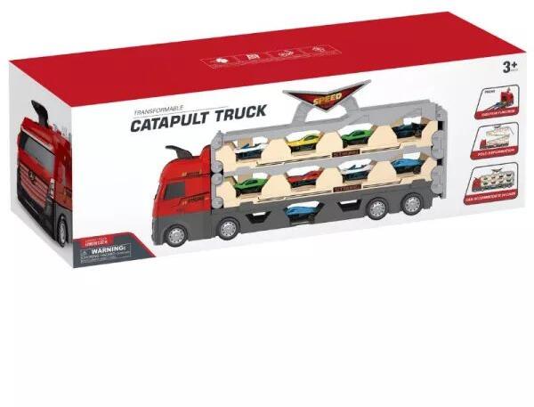 Rengeteg kisautó van a gyerekszobában, és csak hánykolódnak ide-oda?Itt a megoldás, ez a szuper autószállító kamion kihajtható versenypályával. A kamionra több mint 10 darab kisautó elfér, ráadásul a nyíláson keresztül látszanak is. Ha a kamion szállító része kinyílik, egy 2,07 méter hosszú, kétsávos versenypálya terem a szoba közepén. A versenyzőket a pilótafü