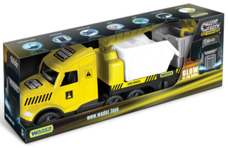 Magic Truck Technic: Kamion konténerrel és fénnyel 80cm - Wader Hivatalos magyarországi forgalmazótól. Leírás: A fiúk számára nagyon érdekesek a különböző munkagépek, melyek közül most egy konténerszállító kamiont hoztunk el, melyen két hely is van a konténereknek, amiben az építőanyagokat az építkezés helyére lehet szállítani, de saját játékait is szállíthat