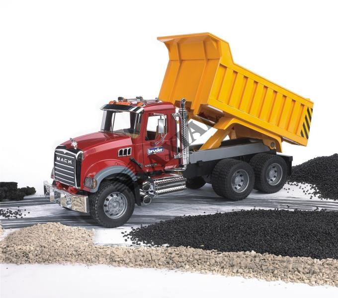 A fantasztikus Bruder 2815 MACK Granite billencs teheraut ó könnyedén belopja magát a gyerekek szívébe. Az 1:16 méretarányú , szuper járgány sárga billencs részével, és kék színű vezetőfülkéjével minden tekintetet magára von, és kicsiket, nagyokat egyaránt elkápráztat. A valósághű megjelenés ű teherutó minden részletében, és működésében megegyezik valódi t