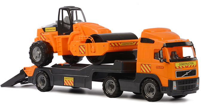 Volvo kamion és úthenger 89,5 cmPolesie márkájú Volvo kamion. Segíts munkagépeiddel az építkezésen! Szállíts munkagépeket vagy nehéz terheket "Volvo" PowerTruck kamionoddal és simítsd el az út felületét egy úthengerrel! A kamion platója lenyitható, ezáltal könnyen szállítható az úthenger és más jármű is. A munkagépek tologathatóak, mozgathatóak, beltéri vagy ak