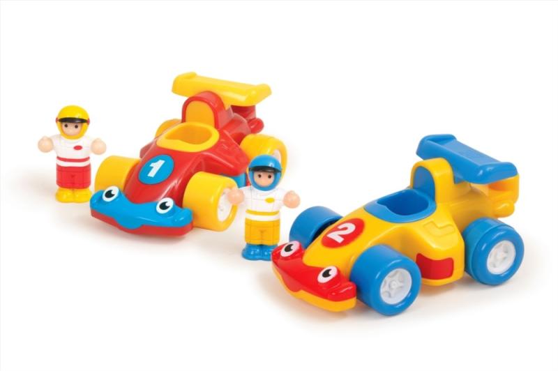 Turbóversenyautók 2db-os a kiváló minőségű angol WOW játékok családjába tartozik. Díjnyertes játék. Ajánlott 1 éves kortól Lendkerekes versenyautó csapat, díjnyertes játék! És már mennek is! Egy fantasztikus versenyautó csapat, amely tartalmaz két bajnok sofőr figurát, és két versenyautót valóságos motorhanggal. A mágneses vonóhorog segítségével a többi WOW Vi