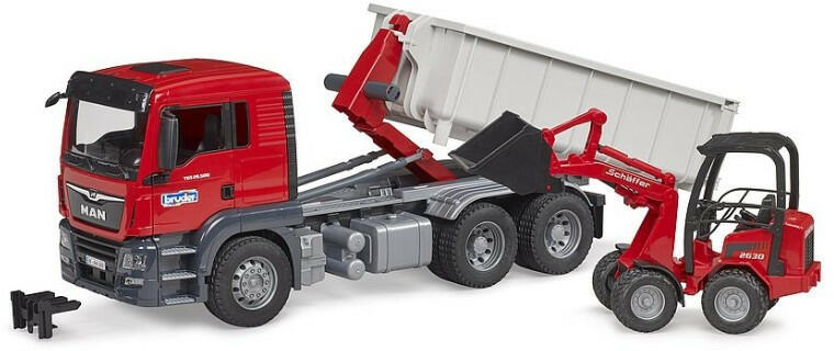 A szállítójárművekért és munkagépekért rajongó csemeték most újabb fantasztikus modellekkel bővíthetik gépparkjukat, ugyanis a Bruder 03767 MAN TGS tréler konténerrel és Schäffer rakodóval játékcsomag kibontása után 2 db impozáns és részletes kidolgozású , a gyűjteményekből nélkülözhetetlen géphez juthatnak hozzá. Hiszen a Bruder jóvoltából megkapnak egy az