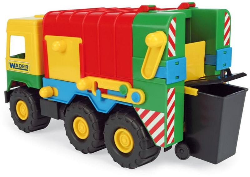 Műanyag kukásautó 42 cm - Wader Műanyag kukásautó 42 cm - Wader. Ez a közepes méretű kukásautó az igazi szemeteskocsik valósághű mása, ami jó szórakozást garantál a gyerekek számára otthon és a homokozóban egyaránt. A színes szemetesautó mozgatható emelőkarral van felszerelve a kuka ürítéséhez, valamint nyitható hátsó és oldalsó ajtóval rendelkezik. A sok mozg
