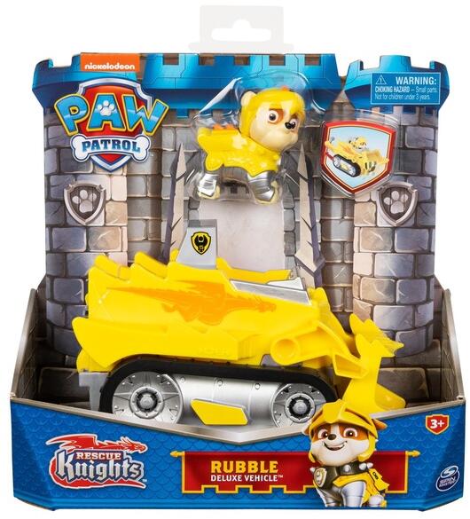 Mancs őrjárat - Rubble és Deluxe buldózer járműve: Paw Patrol hős kutyusai különleges bevetésre indulnak fantasztikus járgányaikon, ahová most te is elkísérheted őklet. Rubble sárga és szürke páncélt visel, járgányát pedig egy narancssárga sárkány díszíti. Az autó bontógolyóval és tolólappal felszerelt, így Rubble a segítségeddel bármilyen akadályt képes elh