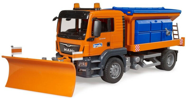 Amint beköszönt az első hó vagy komolyabb fagy, az utak bizony sokszor veszélyessé válnak, de nem csemetéje városkájában, mert most végre megérkezett az eredetihez megszólalásig hasonlító Bruder 03785 MAN TGS Szórókocsi , amely kész arra, hogy biztonságossá tegye a közlekedést a külön beszerezhető Bworld figurák és a többi, ugyancsak külön kapható többi Bruder já