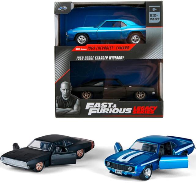Amennyiben gyermeke igazi moziélményre vágyik, vagy rögtön 2 db exkluzív autóval lepné meg gyűjtő ismerősét, aki odavan a Halálos iramban-filmekért, nagyszerű választás a Jada Fast&Furious Twin Pack 1:32 kisautók - 1969 Chevrolet Camaro és 1968 Dodge Charger Widebody autómodell szett. Ugyanis a dobozban két különböző, autentikus kidolgozású jármű bújik meg, amelye