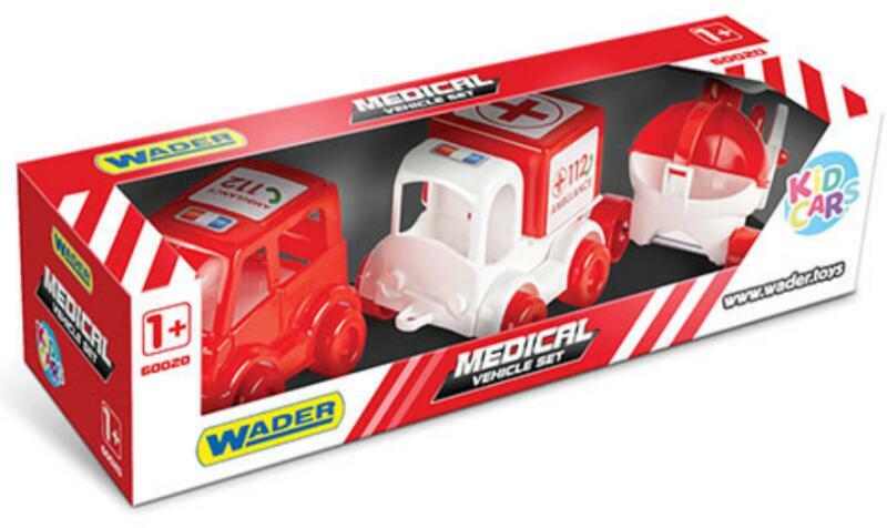 A 3 autóból álló készletben található: mentőautó, orvosi szállító és helikopter. Az elemek lehetővé teszik, hogy együtt játsszanak velük, vagy szétválasszák és egyénileg használják őket. A több elemnek köszönhetően kiváló lehetőség arra is, hogy meghívjanak valakit a családból vagy társaik közül játékra - az együtt töltött idő erősíti a gyermek szoci