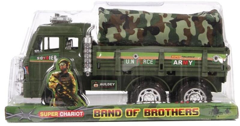 Szállíts csapatokat és fegyvereket a katonai teherautóval! A Katonai teherautó ponyvával műanyagból készült szállítójármű, aminek ponyva védi a platóját. A teherautó krómozott betétekkel készült, a lendkerekes meghajtással messzire tud elgurulni. A Katonai teherautó ponyvával együtt használható más katonai játékkészletekkel is. Méretek: 25 x 10 x 10 cm.