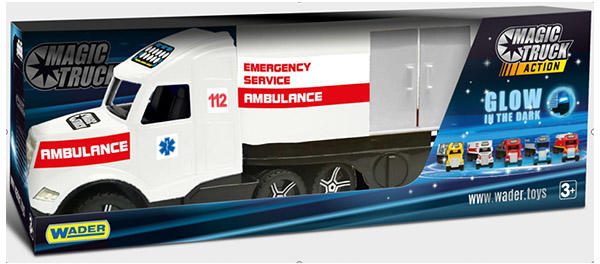 Magic Truck: Mentőkamion fluoreszkáló lámpákkal 81cm - Wader Hivatalos magyarországi forgalmazótól. Leírás: Ez a vagány kamion egészen biztos, hogy le fogja nyűgözni a kis srácokat, hiszen a több mint nyolcvan centis mérete is egyedivé varázsolja. A kamion vontatmánya természetesen leakasztható, az oldalsó és hátsó ajtaja nyitható, így valóban rakhatunk bele rakományt