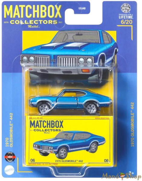 Matchbox Collectors: '70 Oldsmobile 442 gyűjtői kisautó 1/64-es méretarány - Mattel Hivatalos magyarországi forgalmazótól. Leírás: A Matchbox Collectors: '70 Oldsmobile 442 gyűjtői kisautó egy igazi klasszikus amerikai izomautó miniatűr változata, amely minden autórajongó és gyűjtő számára különleges darab lehet. Az 1/64-es méretarányú modell hűen visszaadja az 1970-es