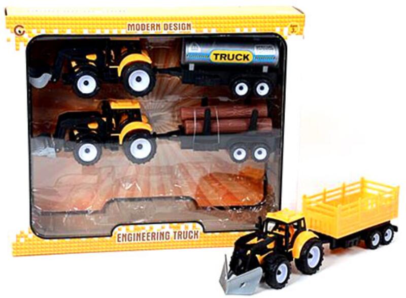 Munkagép pótkocsival 3db-os szett Hivatalos magyarországi forgalmazótól. Leírás: Rönkszállító, tartálykocsi vagy klasszikus pótkocsi is a játék része lehet, így változatos munkafolyamatokat eleveníthetnek meg a munkagépek által a gyerekek. A traktorok mindegyike lendkerekes meghajtású, így a kezdeti lendület sokáig kitart majd a talajon gurítva őket. A csatlakoztatható