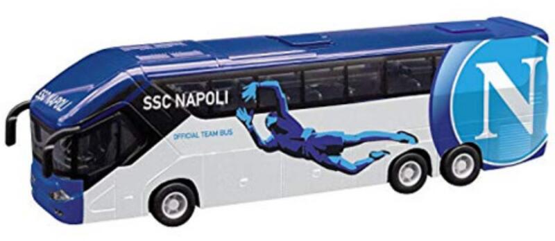 SSC Napoli csapatbusz, hátrahúzós kisautó 1/50 - Mondo Motors Hivatalos magyarországi forgalmazótól. Leírás: Az SSC Napoli, vagyis teljes nevén Società Sportiva Calcio Napoli, egy nápolyi székhelyű olasz labdarúgóklub, aminek a játékosait ez a vagány busz szállítja, ha idegenben kell játszaniuk. Az 1926-ban alapított klub nyert már bajnokságot, és rendelkezik kupa és